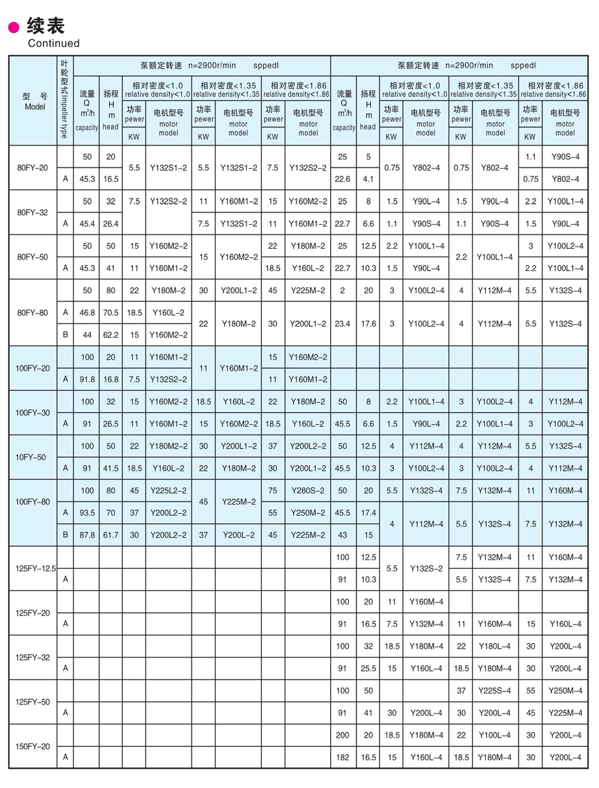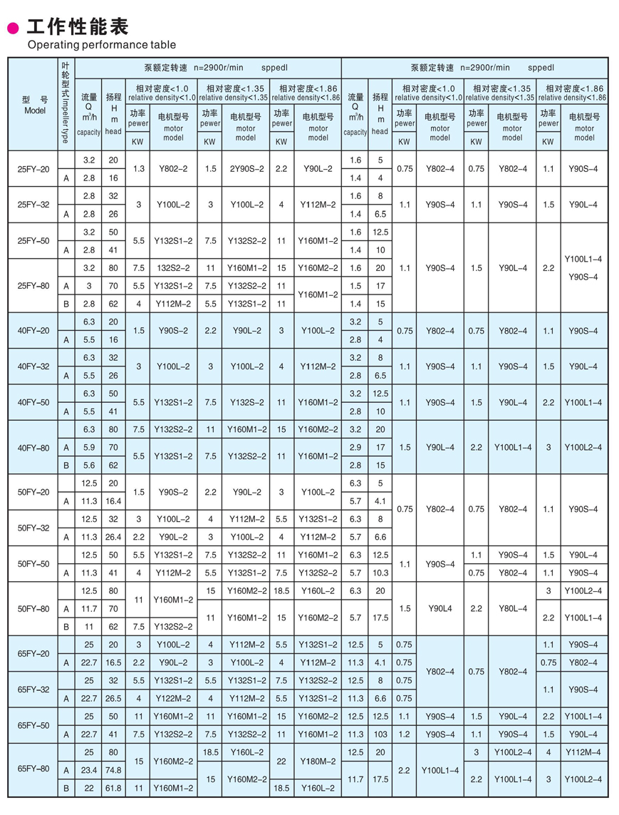 星空(中国)一站式服务平台的输送温度一般为0~ 105C。温度在-20C、105~108C时可采用保温夹套及冷却夹套,采用低温或高温耐磨导轴承,此类情况用户应说明。如输送介质有少量固体颗粒或杂质可选用本公司的TCN型悬臂式液下星空(中国)一站式服务平台,性能稳定可靠。星空(中国)一站式服务平台的工作.压力按1.6MPa设计。星空(中国)一站式服务平台的性能范围:流量为1.6- -2600m/h、扬程为5-132m。根据所输送介质的不同,FY型立式液下星空(中国)一站式服务平台接触液体部分的材质可选用铸铁(用符号H表示)、铸钢、1Cr18Ni9Ti(用符号B表示)、1Cr18Ni12Mo2Ti( 用符号M表示)、304、 304L、316、316L、 904、Lewmet合金、20#合金等材料制造。